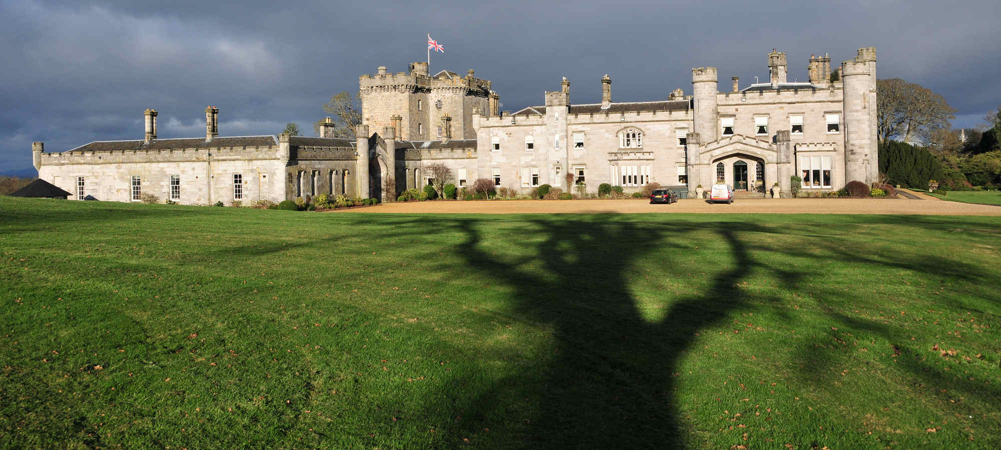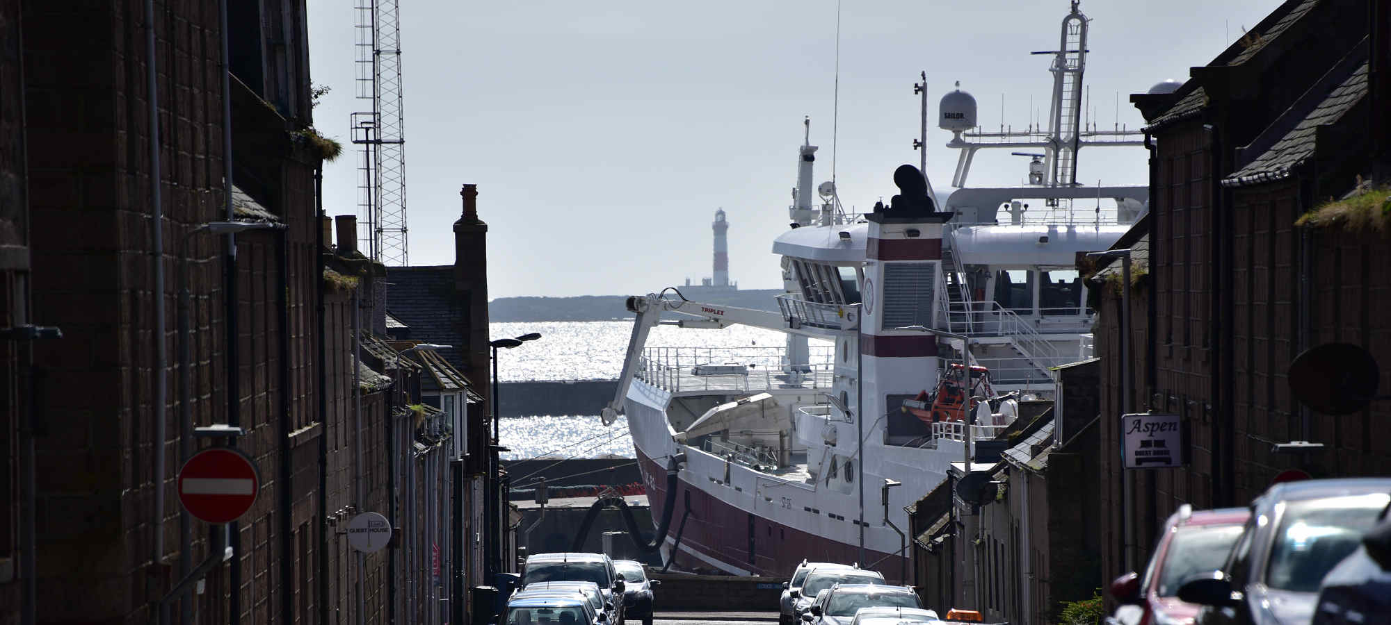 Today's header slides are of Dundas Castle near Queensferry seen in winter sunlight; and a view along a residential street of a fishing boat in harbour at Peterhead in Aberdeenshire.