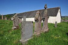 You reach St Mary's Chapel along a (very) minor single track road that turns south off the A827 some two and a half miles north-east of Aberfeldy and just to the south-west of Grandtully Castle. This climbs up the south side of the River Tay valley to a signposted parking area, and from here you walk the hundred yards or so to the chapel, which is tucked away behind a farmstead.