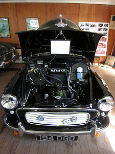 Another fascinating story concerns "Wee Blackie", a 1961 Morris Minor Deluxe Saloon. This was owned by Eddie Anderson of Paisley for 22 years until his death in 2001, and it won him many prizes at vehicles shows. The car has been loaned to the museum by Eddie's widow and is displayed with its bonnet up to show off its utterly pristine engine compartment. To modern eyes the most surprising thing is just how small the engine seems, almost lost within the compartment.
