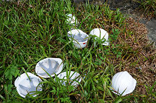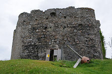 Access to the interior of the castle is prevented by the blocked up gateway, on which you find another warning sign. Except that when we last visited, in Summer 2012, the gateway wasn't blocked up, and entry was obviously possible. We went in to take the photographs shown on this page, but we'd strongly advise against anyone else doing so. There are multiple dangers here that have to be taken very seriously indeed. Vegetation growing out of the tops of many of the walls is a sure sign of instability, and more compelling evidence of this is easy to find in the form of freshly fallen stones on the floors of many of the interior spaces.
