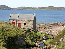 Achiltibuie used to be home to the Hydroponicum. This soil-free complex of glasshouses was closed when we last visited the village, but to an extent has been replaced by the Achiltibuie Garden. Achiltibuie's north-west end overlooks Badentarbat Bay, with its broad beach of white shingle. On the shore here, near the Coigach Free Church, is a water powered corn mill dating back to the 1800s.