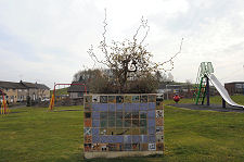 Today's village comprises white-harled houses spread out in a pleasantly functional sort of way over its hillside site. Community facilities include a village school and a pub, the aptly named Foresters Arms. From a visitor's perspective the most striking aspect of the village is the evidence of its community arts projects. One part of the village is home to a series of tiled tree containers placed here by the "Ae Youth Eye Project" in 2005. Even more impressive is the superbly carved wooden totem pole produced by the same project in 2006. You can see more of this on our feature page about it.