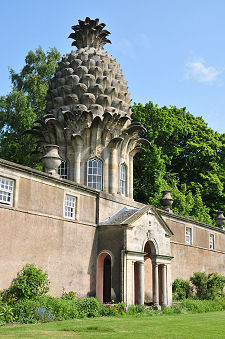 The Pineapple, or the Dunmore Pineapple, is one of Scotland's most remarkable buildings. Standing a mile north of the village of Airth, it was built by John Murray, the 4th Earl of Dunmore, in 1761 as a birthday present for his wife Charlotte. It took the form of a summerhouse from which to view the walled gardens of Dunmore Park, the family estate.