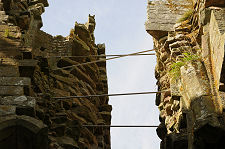 A solar, which can refer to either a room or a tower, is often used in English grand houses and castles to refer to the part of the accommodation used by the owner and his or her family as their private living and sleeping quarters. The quality of the workmanship used in the solar tower at Edlingham was very high, as can be seen from the surviving facing stone, carved heads and other decorative features within the tower today. That is, of course, if you can overcome the very natural fear of standing under such a large chunk of apparently unstable masonry, and get close enough to the solar tower to look at it in any detail.