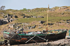 To reach Ard-dubh you turn off the single track road heading from Camusterrach south towards Toscaig. The turn can be found a little after you pass the row of modernised crofts that sit a little back from the inland side of the road at Culduie, and a little beyond the point at which an old fishing boat, Isa, registration BRD362, has been pulled clear of the water and is sadly and gently rotting away.