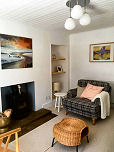 with Scandanavian-style furniture and another wood burning stove, a downstairs shower room,