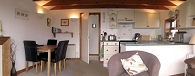 kitchen dining room, a toilet and a double bedroom. They feature a wood-burning
