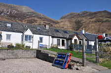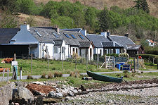 Arnisdale and nearby Corran lie on the north shore of Loch Hourn looking south-west to the mountains of the Knoydart peninsula. They are found at the end of a ten mile single track road running south from Glenelg, itself one of the more remote outposts in mainland Scotland. For more information about Scotland's single track roads and how to drive them, visit our feature page on driving single track roads.