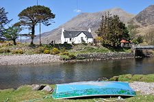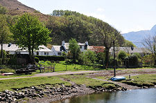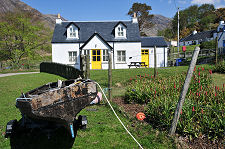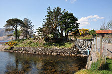 The road through Arnisdale carries on for a further half mile. Here you come to a car park from where you walk across the metal-framed bridge over the River Arnisdale into Corran. The car park lies just beyond the attractive "Ceilidh House and Heritage Centre", which opened in 2008 and offers an insight into the area and its history (and public loos).