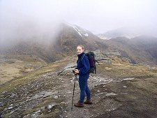Higher on the outlier of Cruach nam Miseag the underfoot conditions improve, and once past it there is a level stretch with even a hint of descent. It's only in poor visibility that you are likely to be lulled by this into any sort of false sense of security, because ahead of you lies the aptly named Spearhead. Don't worry, you'll recognise it when you see it, and it will certainly have your hands out of their pockets as you scramble up the gully to its right.