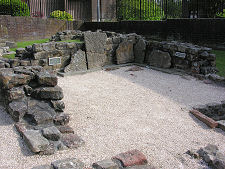 Bearsden's Roman Baths can be found a couple of hundred yards east, or downhill, along Roman Road from Bearsden Cross, the centre of the town. A gate in a low stone wall on your left gives access to a remarkable example of the survival of ancient archeological remains despite later development. Parking restrictions on Roman Road mean that visitors are advised to leave their cars in the car parks at Bearsden Cross and walk.