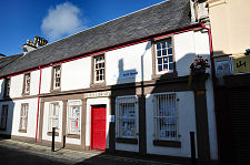 Within the heart of the town itself is The Cross. This would once have formed a focal point. Today it forms the meeting point of two attractive parts of the town, now separated by the start of an ill-judged "inner ring road" built in the early 1960s. To the north-east is the narrow and winding medieval Main Street, which offers the public library and the Smugglers' Tavern (the latter dating back to the 1750s), and a general air of having seen better days and perhaps hoping they will return. A street corner at the far end of the Main Street carries what we suspect may be one of Scotland's oldest extant road signs: with "To Largs" painted on the stone wall of a building above an arrow.