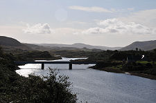 As you approach Bettyhill from the west you cross the River Naver via a striking metal and stone bridge built in 1977. At its eastern end a minor road heads south to the Ciolle an Borgie Cairns and the slight remains of the Achanlochy cleared township.