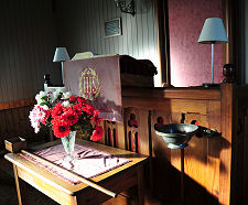 The interior of the church is every bit as lovely as its exterior. There are still oil lamps in place, but it seems that in normal use they have been replaced by electric lighting.