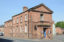 The traffic following the pre-bypass main routes through Brampton passed along Carlisle Road, which stands just to the north of the heart of the town. This remains home to a number of attractive buildings, many made from the local red stone. These include Brampton's police station, which is almost opposite the Cumbrian Antiques Centre.