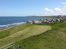 Today the best place to begin an exploration of the promontory fort is the Burghead Visitor Centre, which occupies a white circular structure built on the headland as a coastguard lookout. This provides an excellent idea of just how impressive the fortress once was. Here, too, you can see one of the bull stones recovered during the destruction of the fortress in the early 1800s and a number of other Pictish stones. From the lookout on top of the visitor centre it is possible to appreciate the shape of parts of the citadel and annex, and especially the differences in level between them. On the far side of the road that crosses the headland is Doorie Hill. This once formed part of the rampart and is another excellent viewpoint over the area of the fortress, as well as over the built up areas of Burghead. Today Doorie Hill is home on 11 January each year to the conclusion of "the Burning of the Clavie", a fire festival with strong Norse overtones in which a burning barrel is carried around the town.