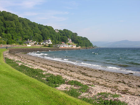 In the middle of the village, a kink in the shoreline produces the small north-facing Ascog Bay, whose beach does much to add to the charm of the village. The landward side of the road that skirts the bay carries a line of extremely desirable and upmarket houses and villas.