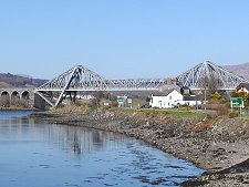 Connel Bridge has had an odd history. From soon after its construction road vehicles were sometimes carried across on a railway wagon. In 1914 it was converted to allow road vehicles to drive over it, and for the next 50 years the bridge was used by both road and rail traffic. This stopped with the closure of the Ballachulish Branch Railway in 1966, and since then the bridge has been used exclusively by road traffic, controlled through the narrow roadway by traffic lights.