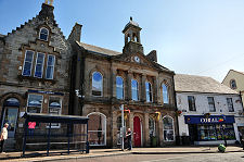 The centre itself however, remains very attractive. The Cross is a broadening of the main street which you could readily imagine housing a bustling medieval market. Today this is bounded on one side by St Margaret's Church, built in the 1870s and apparently undergoing major refurbishment when we visited. The other side of the square is home to some very attractive buildings, including Trinity Church, built in 1857; the Clydesdale Bank building, now home to an estate agents; and a particularly fine library, built in 1853.