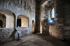 From the Lord's Hall, passages and staircases lead to other parts of the castle including the upper hall directly above it. Here little remains to give a sense of the grandeur this room once enjoyed, though the vast 2.6m wide fireplace is still impressive.