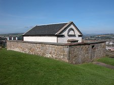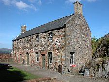 The Governor's House and King George's Battery that dominate the Clyde side of the rock were built in 1735. In 1795 the North Gate facing the town was blocked and replaced by the Duke of York's Battery. Of the various buildings also erected at the time in the cleft between the peaks, only the "French Prison" remains. The other notable building today is the Magazine, built on The Beak in 1748 after earlier buildings had been demolished. This was designed to survive a direct hit by an artillery shell, an event that had largely destroyed Fort Augustus in February 1746.