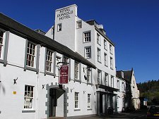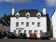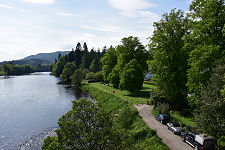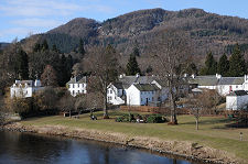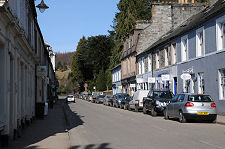 The main road, Bridge Street, extends from the bridge at one end through the built up area of the village, running in effect from the strikingly white and very comfortable Atholl Arms Hotel overlooking the bridge to the equally strikingly white Royal Dunkeld Hotel. This street is lined with a fascinating collection of shops, and about half way along it intersects High Street, leading to The Cross and the Cathedral beyond. Immediately to the west of the village and the cathedral are the extensive grounds of the Hilton Dunkeld House Hotel.