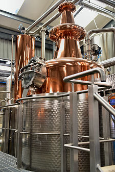 The surprises begin when you turn off the minor lane it’s located on. It becomes immediately obvious that someone has thought about what they really wanted from a distillery: and then gone out and built it. From the welcoming gateway to the superb reception, shop and tasting area, everything exudes a sense of quality. (Continues below images...)