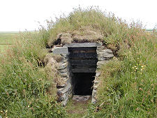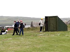 In June 2000 the TV archeological programme Time Team came to Mine Howe to explore the structure. Thought drawing no firm conclusions about its purpose, they did work out how Mine Howe had been built: and to prove it they built a smaller version nearby. They dug a hole of the required depth before building the structure within it from above. The roof of the main chamber simply corbelled in from the walls and was capped off with a large flat stone. (Continues below image...)