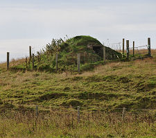 In 1999 the local farmer, Douglas Paterson, rediscovered the entrance and cleared out the chamber once more. What he found was a passage that sank nearly vertically into the ground and was accessed by 29 steep stone steps. Half way down, these doubled back on themselves at a "landing", and at the bottom there was a very deep step into the bottom of the chamber. Two long low galleries extended outwards from the half way "landing".