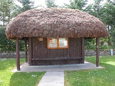 If Edderton can be said to have a centre, it's the crossroads on the A836 overlooked by the war memorial. On another corner is what looks like a bus shelter, but turns out to be a heather hut thatched by local schoolchildren in 1993.