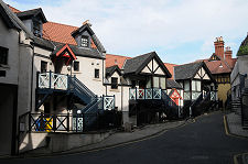 Within the village a mews terrace concluding in a round-ended building topped off with a conical slate roof, like some misplaced turret from a Scots baronial mansion, is a delight: as is the sign above a pair of garages in a mews terrace advertising "Ian F. Cunningham, Bentley Specialist".