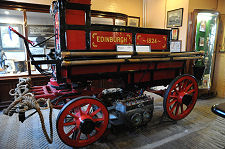 The fire engines in the main room come from far beyond the confines of Lothian and the Borders. An open Dennis engine which came into service in 1930 is painted up as belonging to Fraserburgh Town Council, while other engines carry the names of the "South-Eastern Fire Brigade" and the "Norman Cross Huntingdon" fire brigade. Other engines on show were more locally based, including a vehicle which looks more like a bus than a fire engine and served in Musselburgh until 1960. Perhaps the most important vehicle in this area is a Halley Fire Engine manufactured in Glasgow and purchased by Leith Fire Brigade in 1910. This is a truly beautiful historical object of which the museum is justifiably proud: but to modern eyes the bespoke controls look as if they would make it a nightmare to drive.