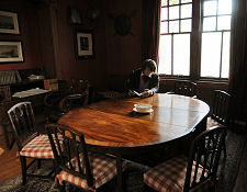 The rear of the main floor, beyond the shop and reception, is devoted to Sir Walter Scott. Here you can find things like a collection of his walking sticks, his bonnet, and his wallet. At the far end of the hall is an area furnished to represent Scott's dining room at 39 Castle Street in Edinburgh, complete with his dining table. Also on view is Scott's chess set and the rocking horse he used as a boy.