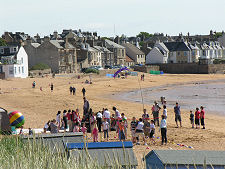 Elie occupies the eastern half of a mile long south-facing sandy bay framed at either end by rocky points. Since 1929 it has been formally joined with Earlsferry, which runs along the western half of the same bay. You can read the full text of the chapters about Elie and Earlsferry in D Hay Fleming's 1886 book: Guide to the East Neuk of Fife.