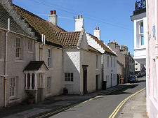 The twin settlements of Elie and Earlsferry remain extremely attractive and charming places to visit. The oldest buildings are found on South Street in Elie, whose south side backs onto the beach. Parallel to it and a little inland is the main street, operating under a number of different names including, from east to west, Elie High Street, Bank Street, Links Place, Liberty, and Earlsferry High Street.