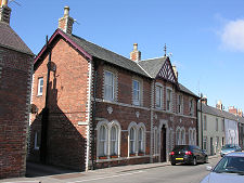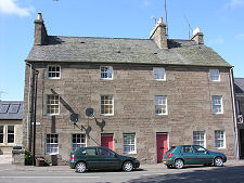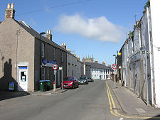 As the High Street descends in a series of curves, the buildings which line it are either grey and white harled or made of brick. The use, unusual in Scotland, of brick is because of the brickworks which operated at Incoonans, a mile north-west of Errol, from the 1870s until it closed in 2008. A number of the buildings in the High Street have walls made of clay: also unusual and also because of the clay deposits in the area.