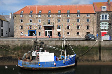 The Eye Water flows north into the North Sea here and the natural harbour formed by the river mouth has been used as far back as the 1200s, and probably much further. During Henry VIII's incursions into Scotland during the 1540s (see our Historical Timeline) the English used the port and built an artillery fort on the east side of the Eye Water. This occupied the area behind the site used in 1753 for one of Eyemouth's most distinctive buildings, Gunsgreen House. (Continues below image...)