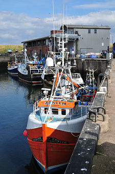 As you move north-west through this small town, the sense of a working fishing harbour is quickly replaced by that of a seaside resort. Eyemouth offers a sandy north-facing beach framed by the rocks of the bay to the west and the harbour walls to the east.