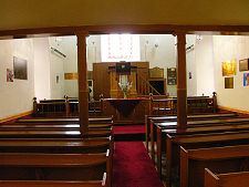 Internally the kirk seems smaller than it appears from the outside. At the east end a gallery extends forward almost to the mid point of the church, meaning that most of the pew area is double layered. This gives the lower level of pews an intimate, rather enclosed, feel.