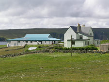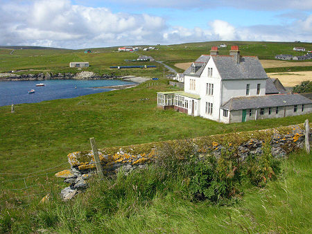 Fetlar's main settlement is Houbie, situated where the main road across the island touches the south coast. The term "main settlement" is a relative one: most of it can be seen in the header image. Houbie has a concrete pier reaching out out into the Wick of Tresta. Opposite its landward end is a must-see on Fetlar, the Fetlar Interpretive Centre. Houbie is also home to Fetlar's shop and post office. Overlooking it from the east is Leagarth House, which in the early 1900s was the retirement home of the eminent surgeon Sir William Watson Cheyne.
