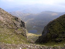 A fine example of this is the Coire an Lochan, seen through a dramatic gap in the edge of the plateau in the photograph below left.