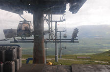 The serious disadvantage of approach routes from the north is the even more serious temptation placed in your way in the form of the gondola, which sweeps visitors effortlessly from the car park up to the Snowgoose Restaurant at a height of 655m, or just over half way up the mountain.
