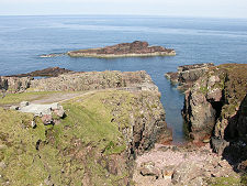 The lighthouse here was built in 1910. A path heads east from the lighthouse for a few hundred yards to the old landing stage alongside a rocky cleft originally used to service the lighthouse. It is difficult to believe today, but this path once carried rails to allow the easy transport of supplies to the lighthouse.
