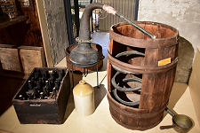 Most of the exhibition areas are on the upper floor of the museum, accessible by lift. The military past of the area is marked by, amongst other exhibits, a warning sign from Gruinard Island which was contaminated by anthrax during biological warfare experiments in 1942 and not declared safe until 1990. "A Walk Through Time" includes a recreated school room from the days of talk and chalk, a shop that will evoke memories in those of a certain age, and an illicit still once used in the area.