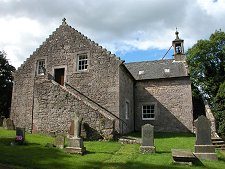 On steeply rising ground on the east side of the burn is Gargunnock Parish Church, rebuilt in 1774 from a church erected in 1626, itself a replacement for an earlier ruinous structure. The church is a traditional T-plan kirk whose exterior stone walls would originally have been harled (rendered). External stairs are built against all three "arms" of the church to give access to internal galleries.