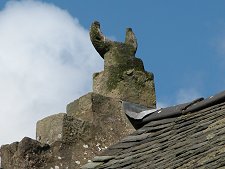One external detail is fascinating. The east and west gables are topped off by decorative finials said to come from the earlier church. These are usually described as representing a cross on the east gable and a crescent on the west gable. Perhaps, but it has to be said that the finial on the west gable looks much more like a pair of horns than the crescent it is meant to represent: you can't help wondering whether the mason was paid less than promised and this was his way of getting even.