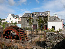 Further streets form a grid and the overall effect is both pleasant and, in the right light, very photogenic. On the north side of the burn near its outflow is a water wheel, a relic from earlier days when economic activity revolved around the port and the mills in the village.