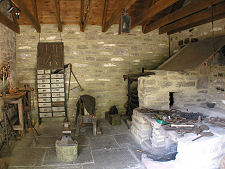 Starting in the farmstead, the first building on the left is the traditional hearse house for Glamis parish. Inside you find the horse drawn hearse once used in Glenisla. This would have been used to take the more wealthy residents of the parish on their final journey. Others would have had to rely on farm carts or simply being carried by friends or relatives. A little further along the same range is the smiddy, equipped with a forge plus all the tools and various items of "work in progress" that show the working life of the blacksmith.