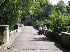 The main entrance to the Necropolis is via ornate gates bearing the motif of the Merchants' House to the south of Glasgow Cathedral. From here a drive leads past the Cemetery Lodge and over the Bridge of Sighs. At the far end of the bridge with the hillside of the Necropolis rising steeply above, you are faced by a large sweeping stone facade containing an arch and doorway. This is a relic of a very different Necropolis that almost developed here.
