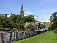 ![]() Glasgow Necropolis from the West, with the Main Entrance Gates and the Bridge of Sighs in the Foreground |
